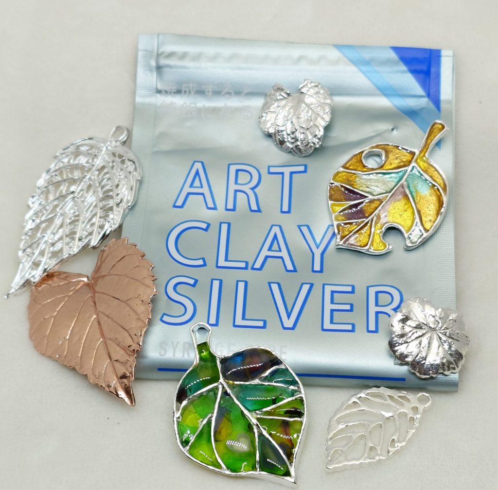 銀粘土細工体験では、相田化学工業(株)の銀粘土を使ってオリジナルアクセサリーや小物を制作します。銀粘土で好きな形をつくり、焼成すると銀純度99.9%の作品が完成!